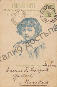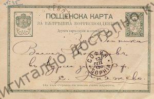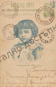 Пощенска картичка до В. Коларов в Никопол, април 1896 г....