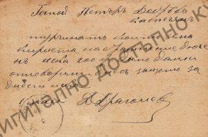 Пощенска картичка до Петър Добрев – брашнар в Каспичан (бащата...