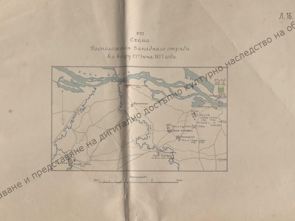 Карта, 1 лист, 4 карти: 3 – № 22 – Расположения Западнаго отряда к вечеру 27 юня 1877 г.