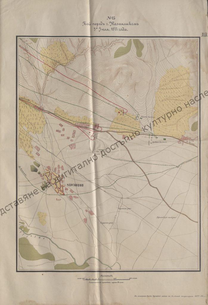 Карта, на 1 лист две карти: № 15 Бой перед г. Казанлыком, 5 юли 1877 г.