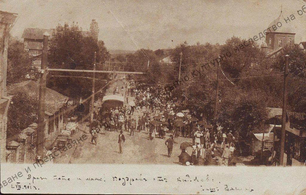Пощенска картичка до Петър Коларов (баща на В. Коларов) от В. Коларов, Княжево 1901 г., 1. VIII. На лицевата страна улица в Княжево. Размер 8,5/13,5.