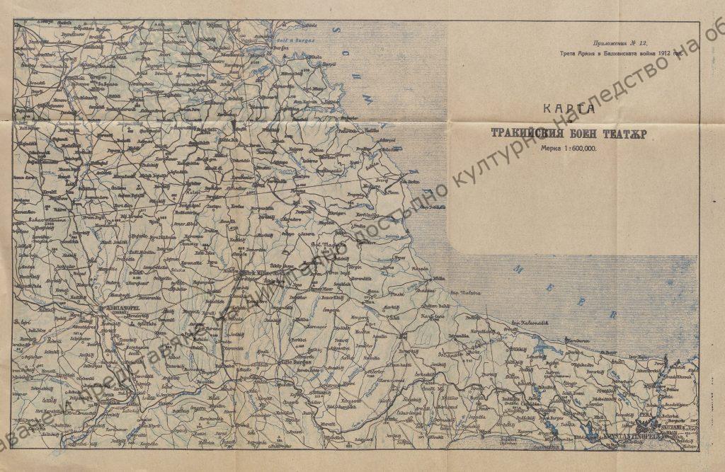 Карти, отрязани от учебник: 2. Карта на Тракийския боен театър. Трета армия в Балканската война.