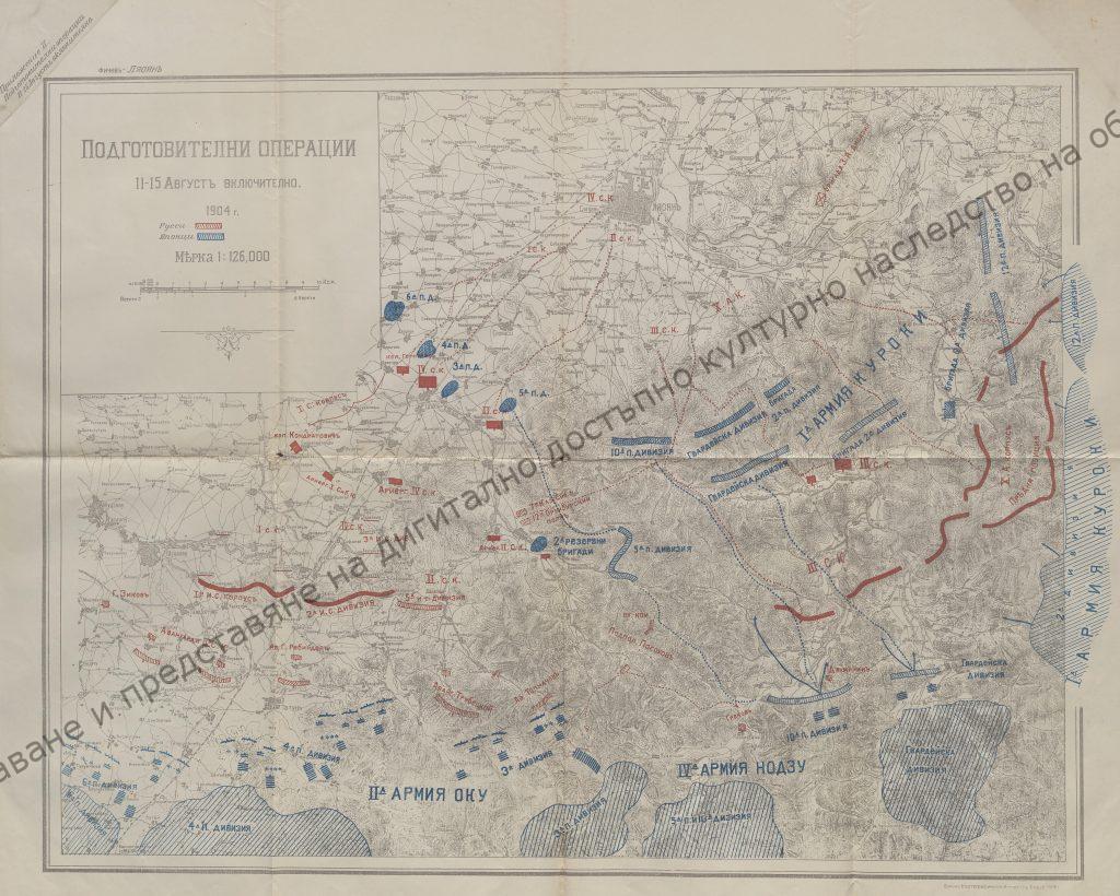 Карта Подготвителни операции 11 – 15 август включително, 1904 г.