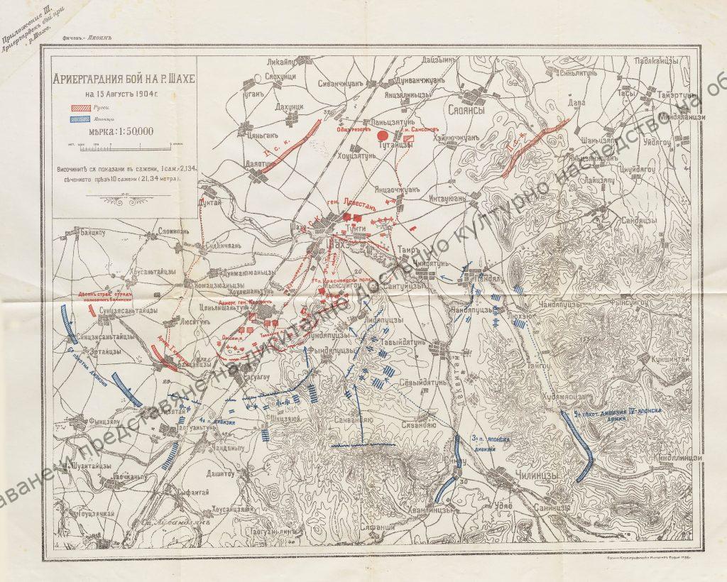 Карта Ариергардния бой на р. ШАХЕ на 15 август 1904 г.