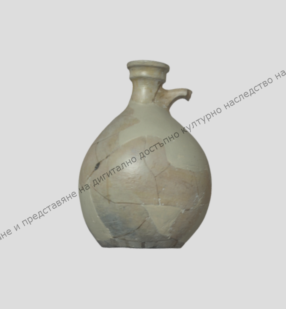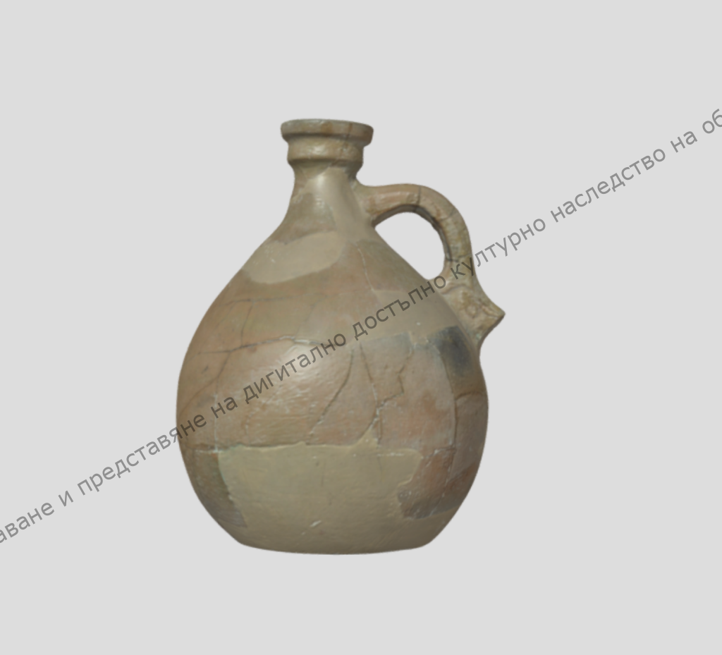 От жълта глина, реставрирана. Крушовидно призместо тяло с къса шийка и профилирано фуниевидно устие. Датировка: края на VIII- началото на IX в. P3825 by digitalshumen5 on Sketchfab