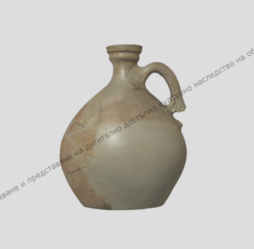 От жълта глина – реставрирана. Приземисто крушовидно тяло с къса шийка и профилирано фуниевидно устие. Датировка: края на VIII- началото на IX в. P3821 by digitalshumen5 on Sketchfab