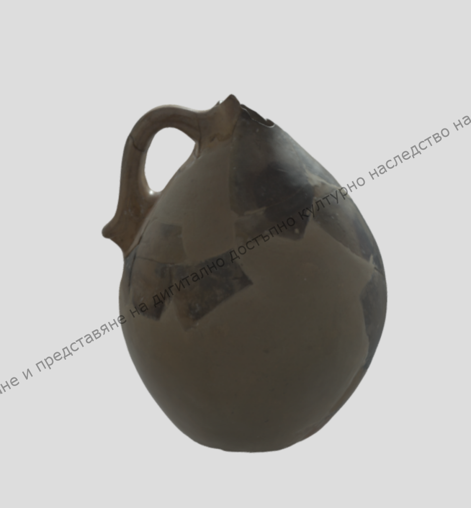 От жълта глина – реставрирана. Приземисто крушовидно тяло с къса шийка и профилирано фуниевидно устие. Датировка: края на VIII- началото на IX в. P3821 by digitalshumen5 on Sketchfab