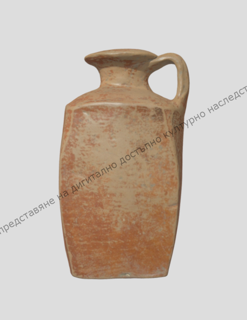 Съдът е четиристенен, с тясно устие и дръжка