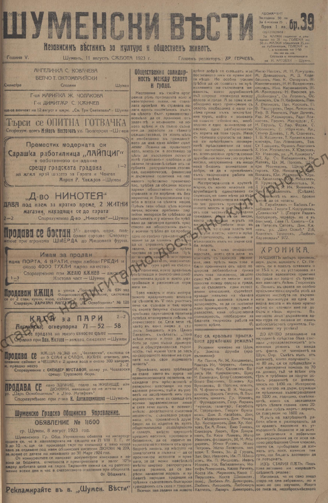 Project “Creation and presentation of digitally accessible cultural heritage of Shumen Municipality”