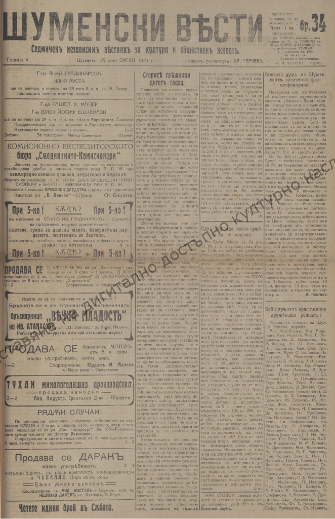 Project “Creation and presentation of digitally accessible cultural heritage of Shumen Municipality”