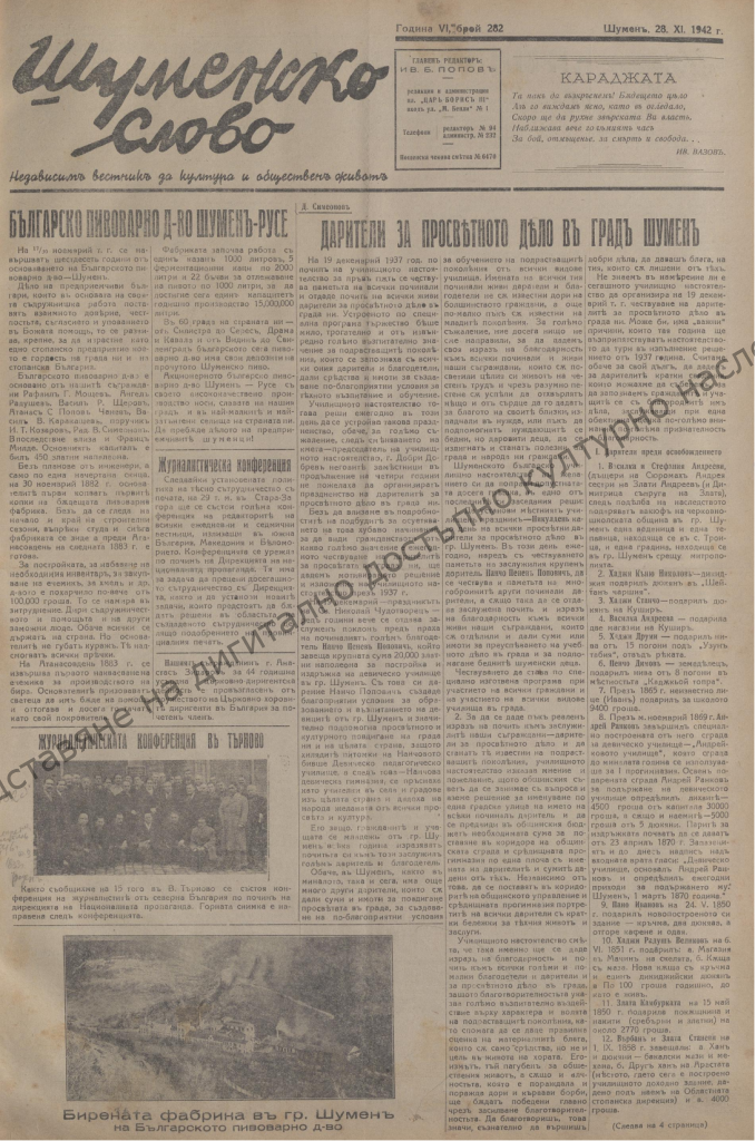 Project “Creation and presentation of digitally accessible cultural heritage of Shumen Municipality”