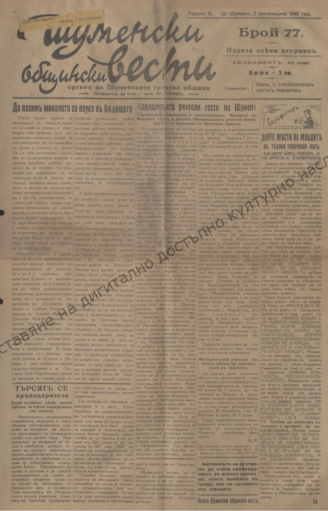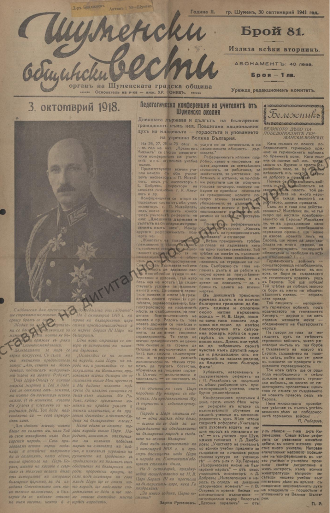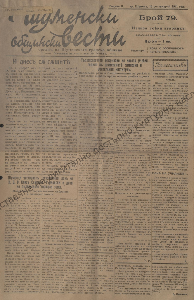 Project “Creation and presentation of digitally accessible cultural heritage of Shumen Municipality”