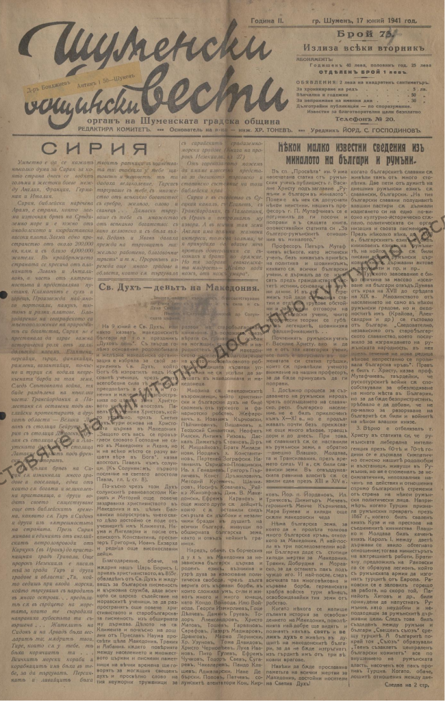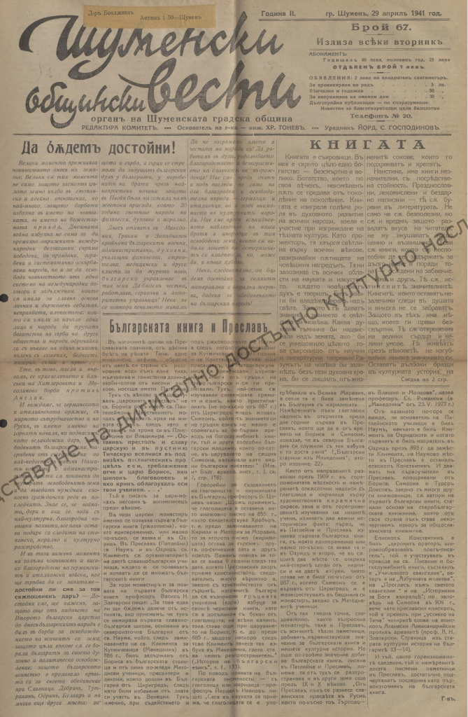 Project “Creation and presentation of digitally accessible cultural heritage of Shumen Municipality”