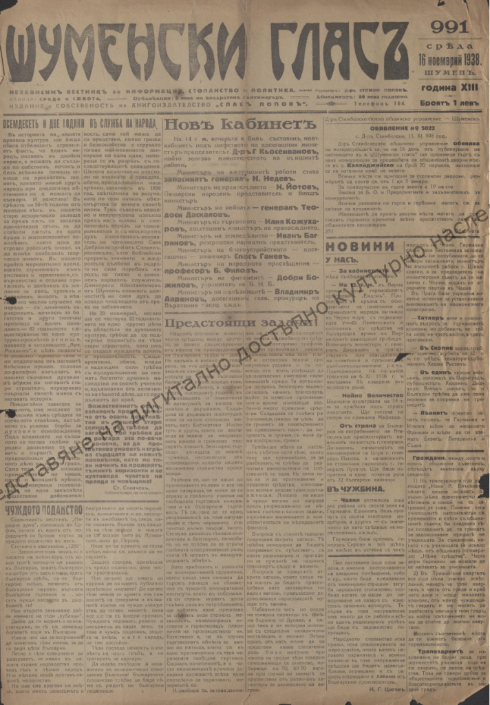 Project “Creation and presentation of digitally accessible cultural heritage of Shumen Municipality”