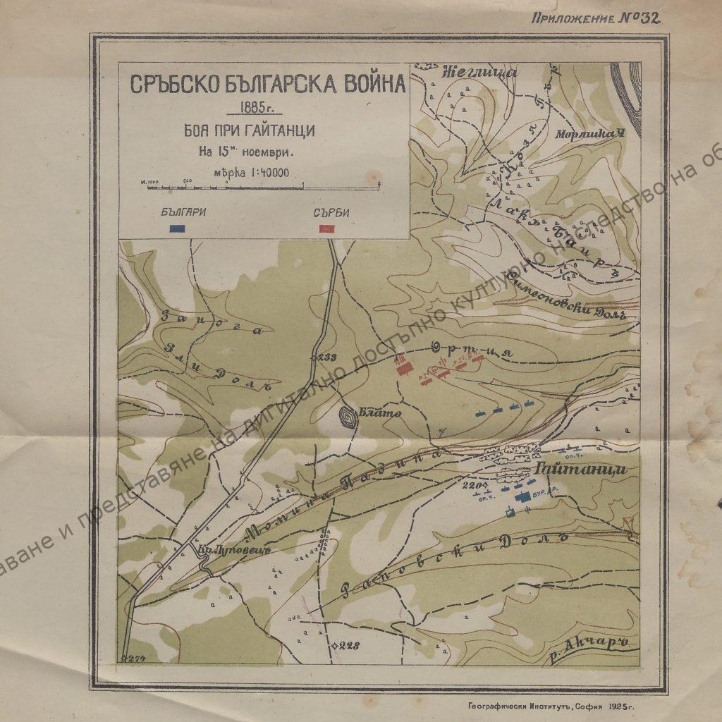 Карта СРЪБСКО БЪЛГАРСКА ВОЙНА 1885, боя при Гайтанци на 15. XI.