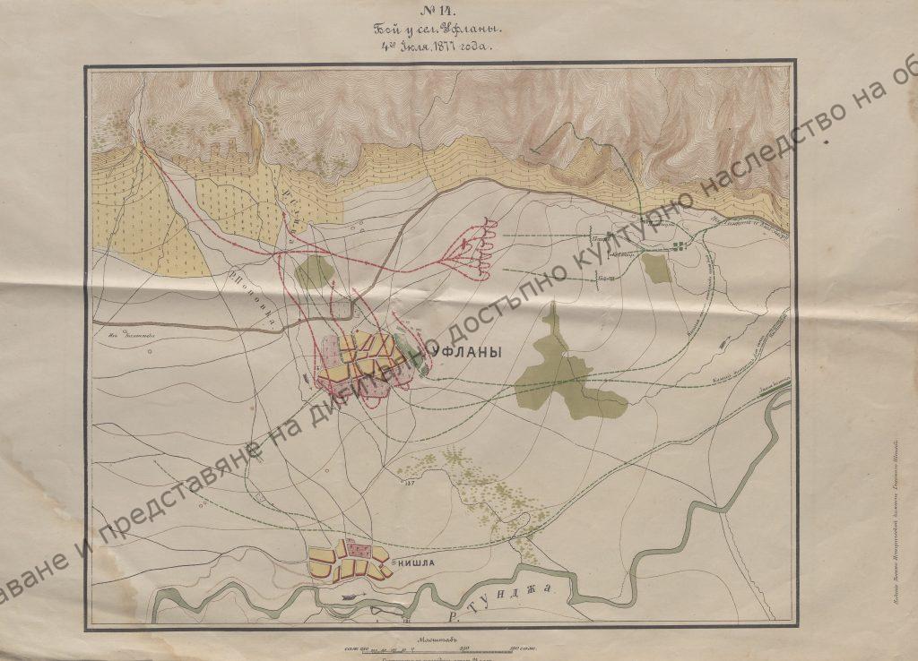 Карта, на 1 лист две карти: № 14, Бой у сел. Уфланы, 4 юли 1877 г.
