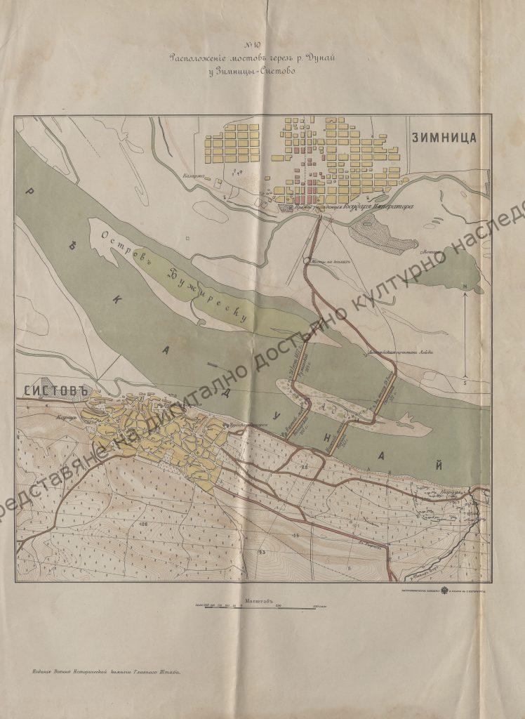 Карта, на 1 лист две карти: № 10, Разположение мостов через р. Дунай у Зимницы – Систово.