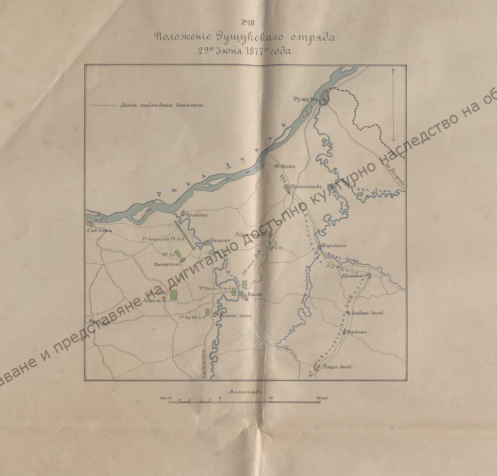 Карта, 1 лист, 4 карти: 1 – № 18 – Положение русчуксаго отряда 29 юня 1877 г.