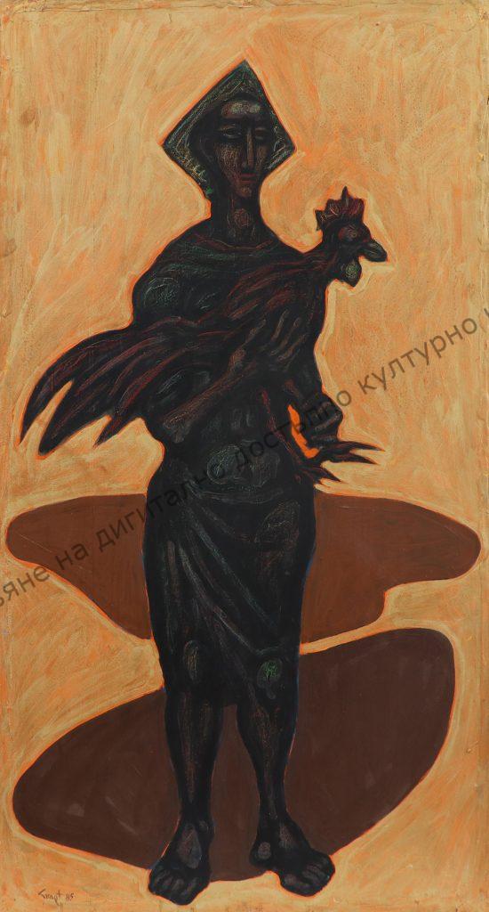 Спартак Паскалевски (1947), „Жена с петел“, 1985 (Цикъл – Псалми)
