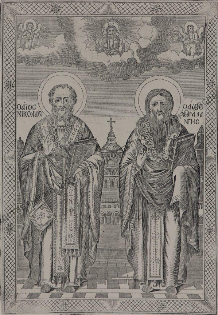 Renaissance engravings of the 19th century, Rila Monastery, “St. Nicholas and St. Charalampius”
