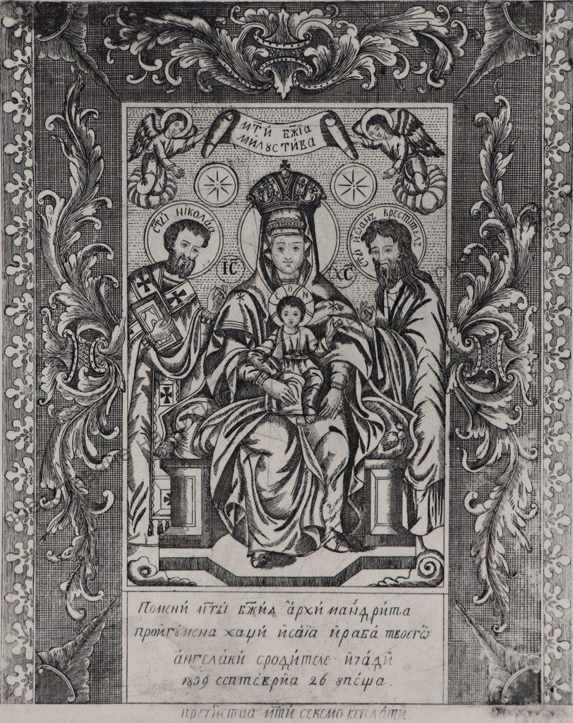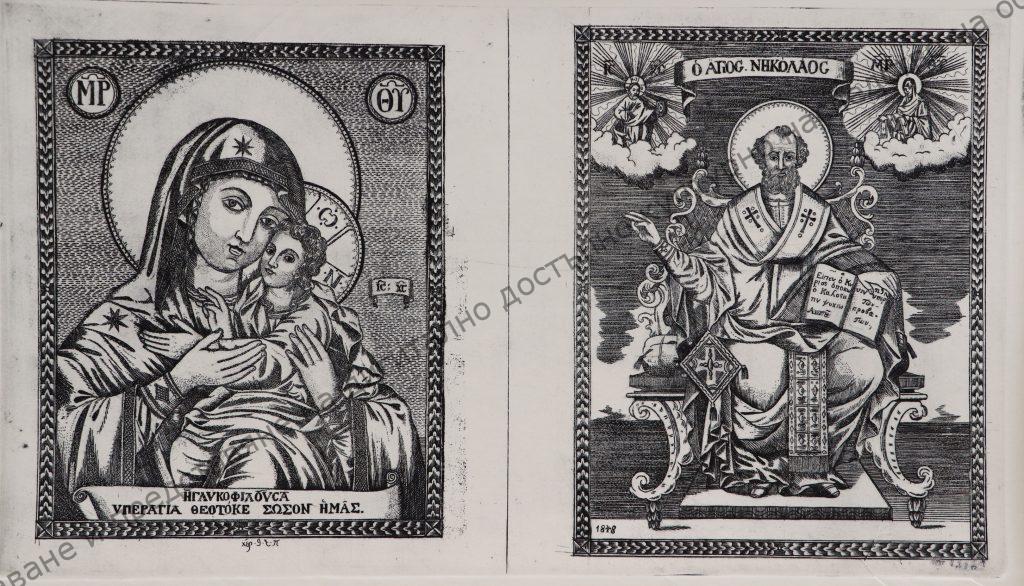 Renaissance engravings of the 19th century, Rila Monastery, “The Virgin on a throne with Christ”, “St. Nicholas on a throne”, 1848