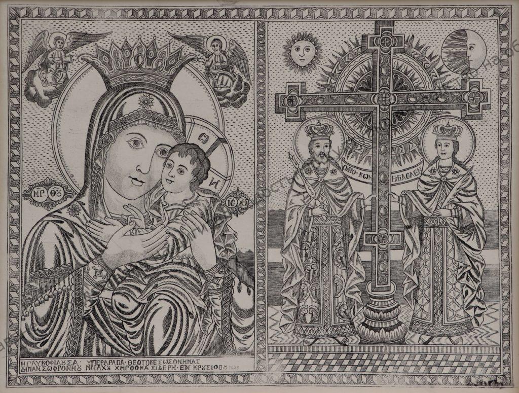 Renaissance engravings of the 19th century, Rila Monastery, “The Virgin with Christ” and “Constantine and Elena”