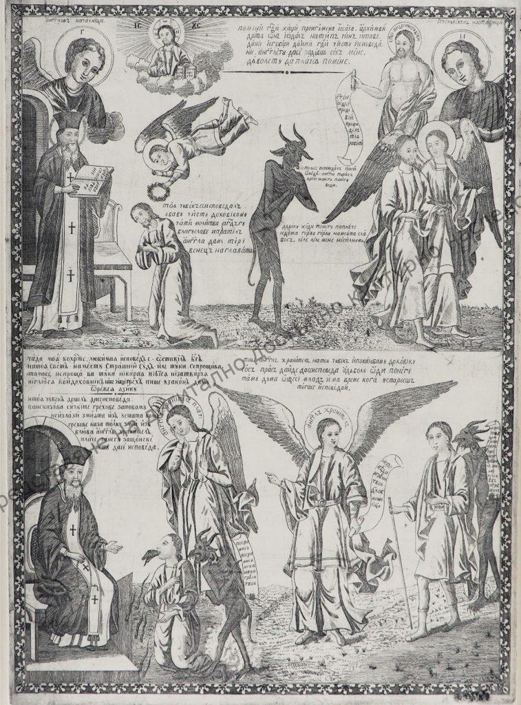 Renaissance engravings of the 19th century, Rila Monastery, “Right and Wrong Confession”