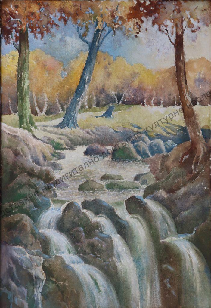 Asen Terziev (1915 – 1995), “Autumn landscape with a waterfall”