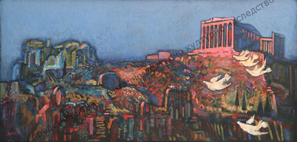 Angel Metodiev (1921 – 1984), “Doves over the Acropolis”, ca. 1977