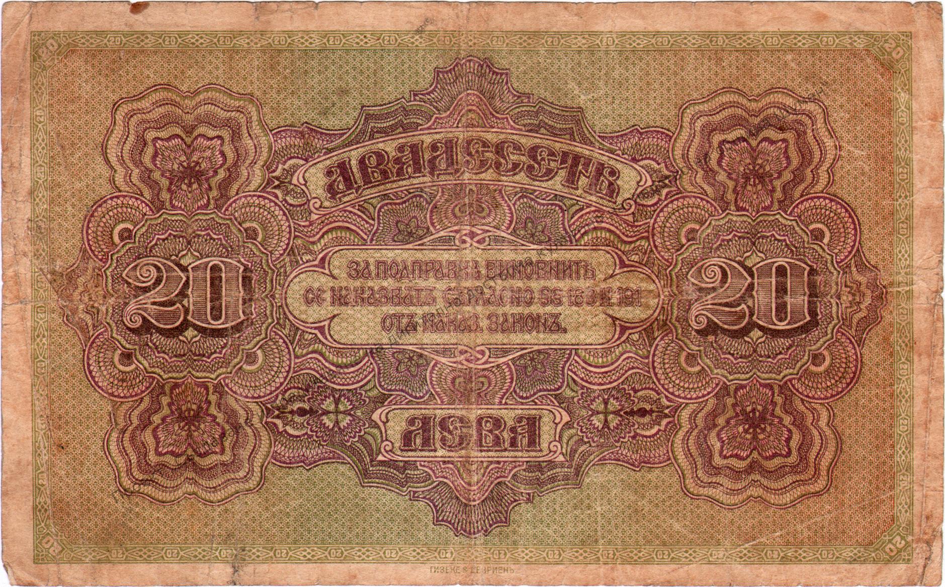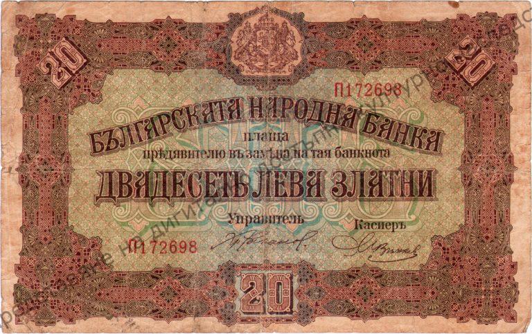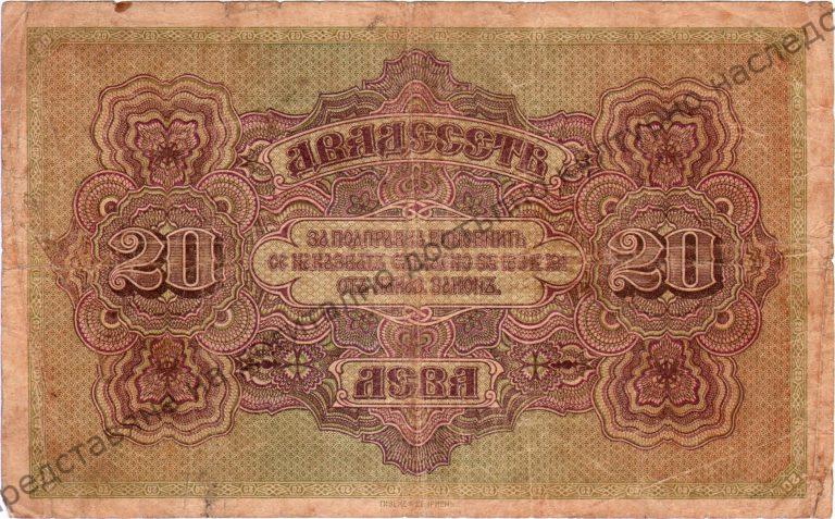 Банкнота от 20 лева. Злато. В обръщение от 1917 до 1924 г.