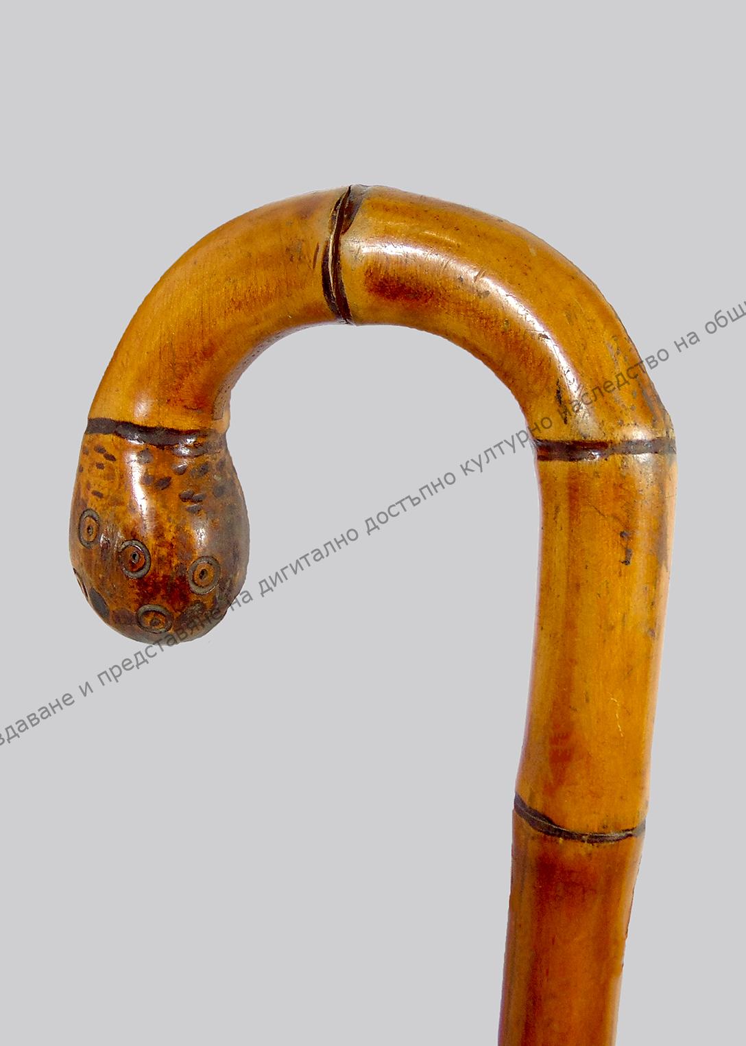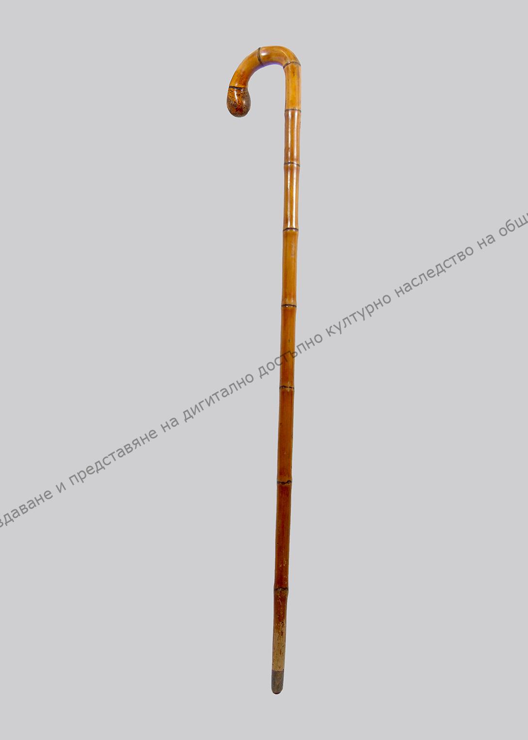 От лакиран бамбук. Дръжката украсена с врязани окръжности. Използван от арх. Владимир Кузов
