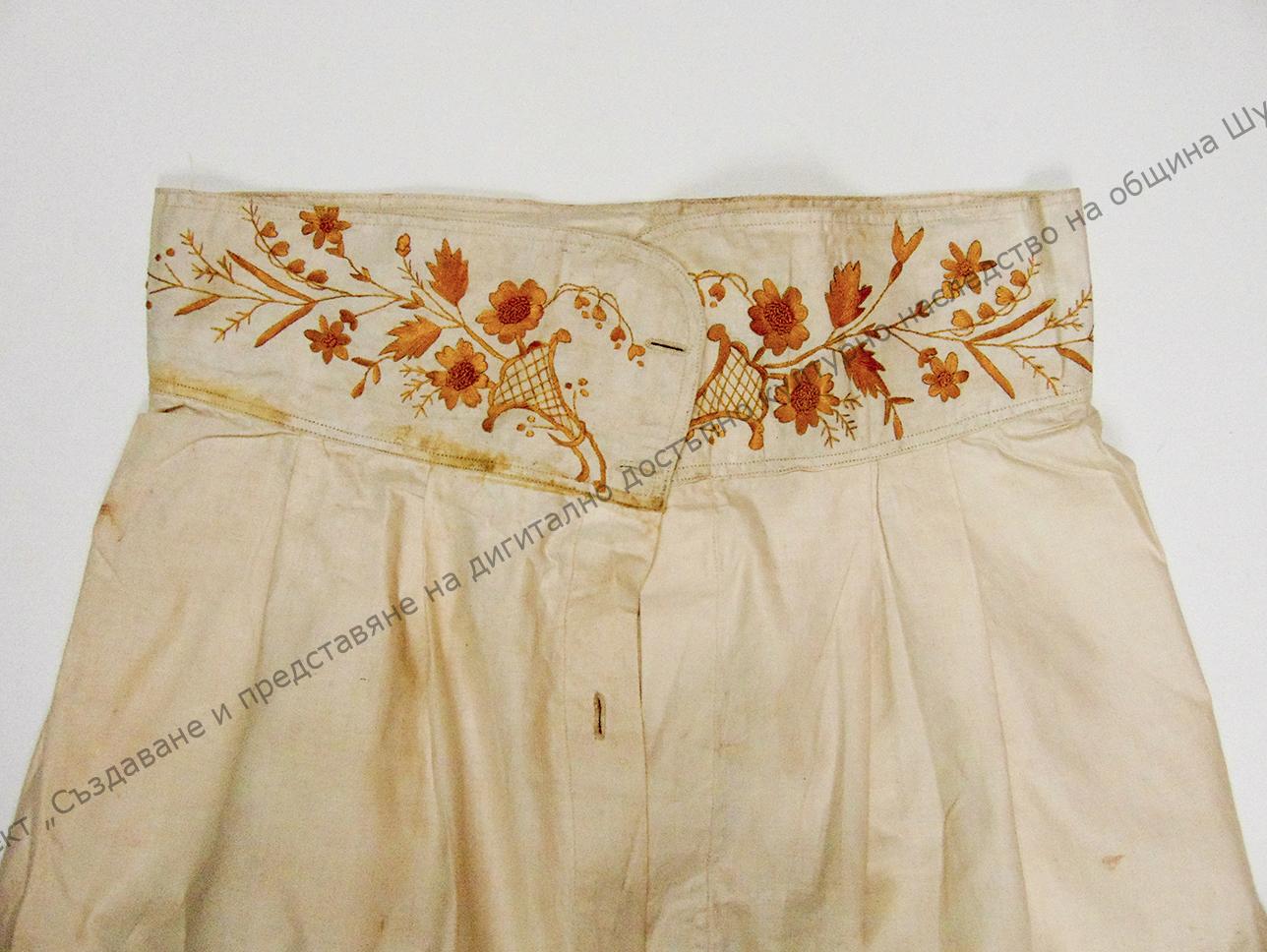 Мъжко, от бяло фабрично хасе. Колана украсен с ръчна бродерия с копринени конци