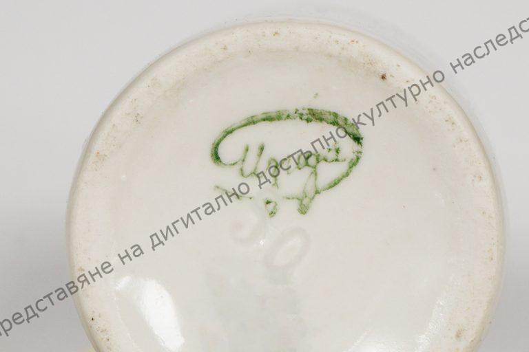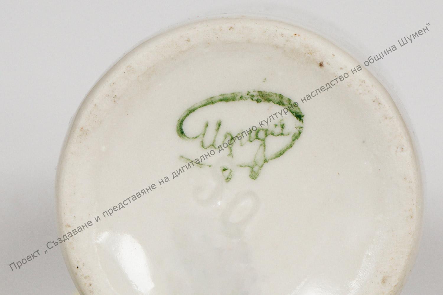 От порцелан. На дъното от външната страна – номер „50“. Над него – печат „Изида“