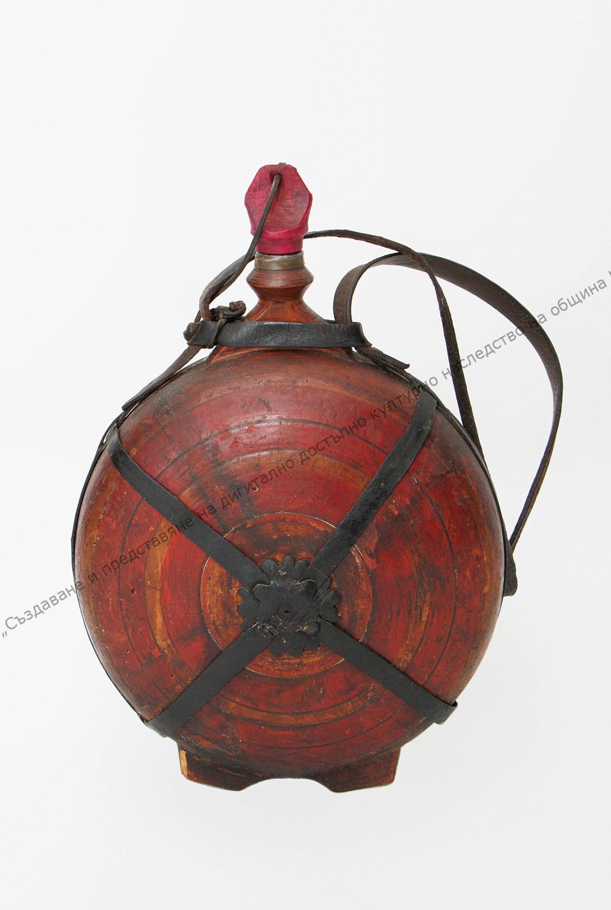 Типична форма, от дърво, оцветена в червено, с кожена каишка