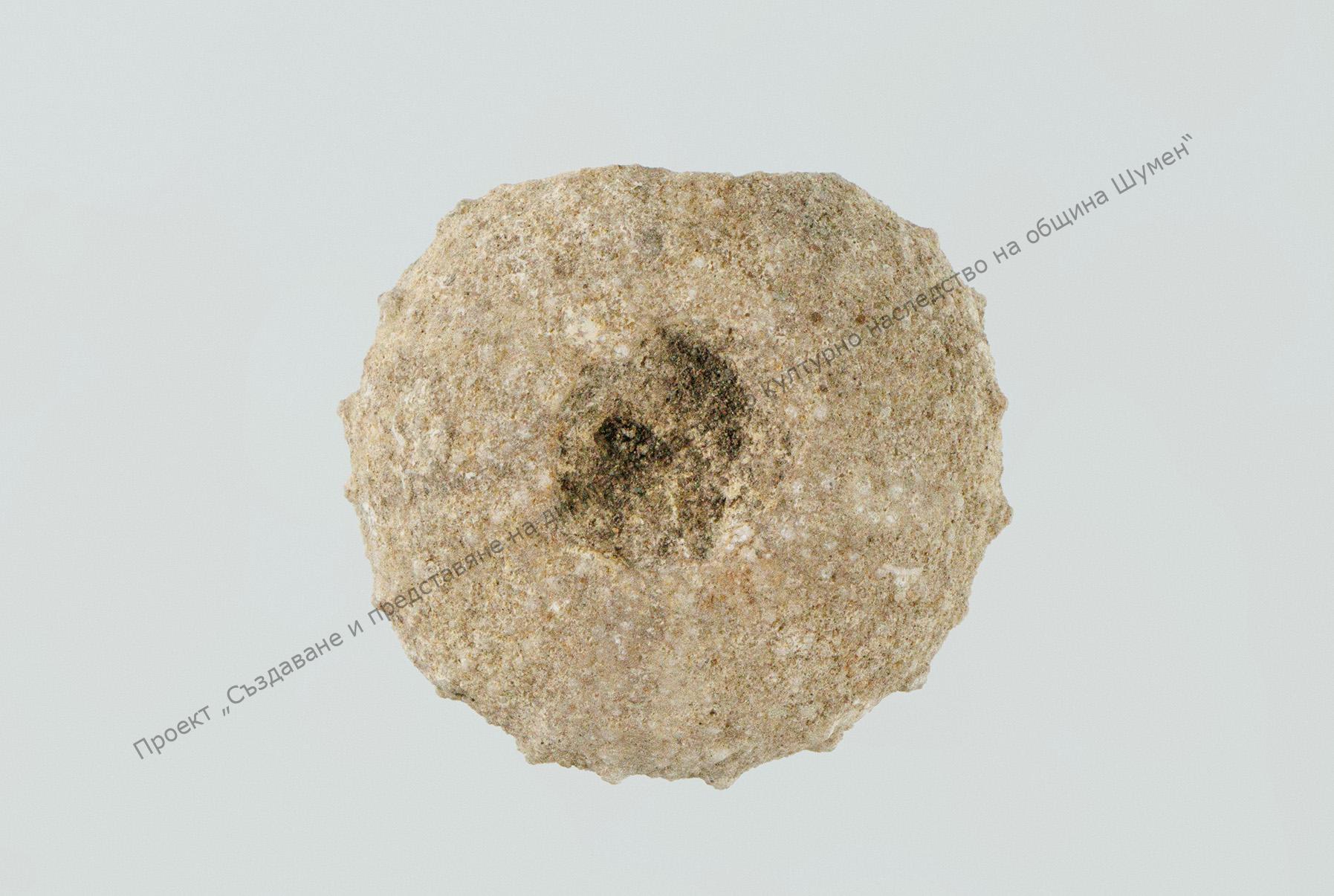Cream white fossil. Mushroom-shaped, cylindrical central opening, Surface radially grooved by spinules. “Shumen and its Townspeople in the National Culture and Knowledge” Collection