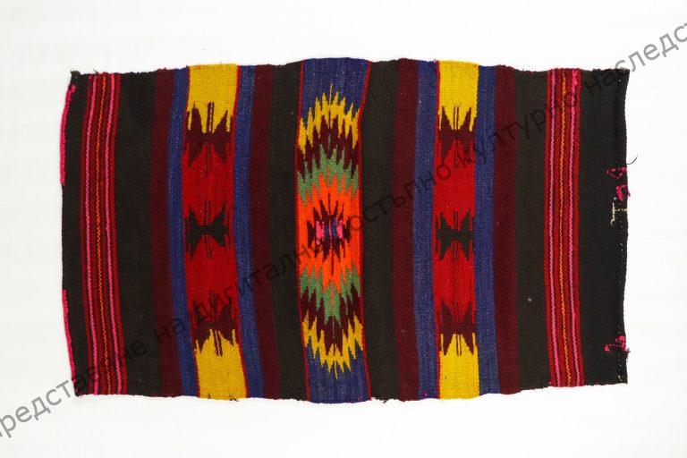 Of wool. Home-woven, quadruple, in multi-colour stripes, between them interwoven figures, the early 20th century, for trousseau
