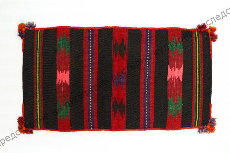 Of wool. Home-woven, quadruple, in multi-colour stripes, between them interwoven figures, circa 1925, for trousseau