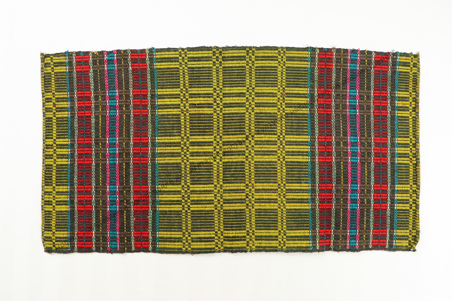 От вълна и памук. Домашно тъкана мармородно, образуват се разноцветни „калемчета“, края на XIX век