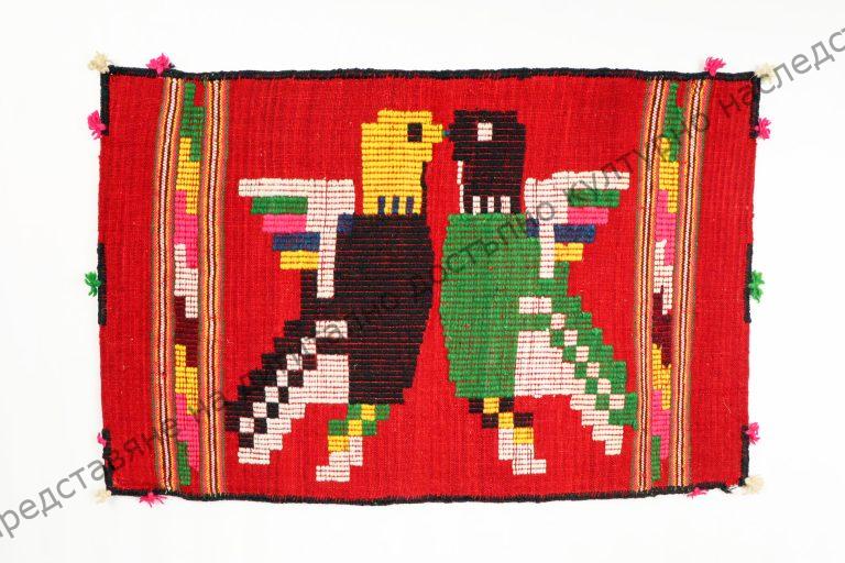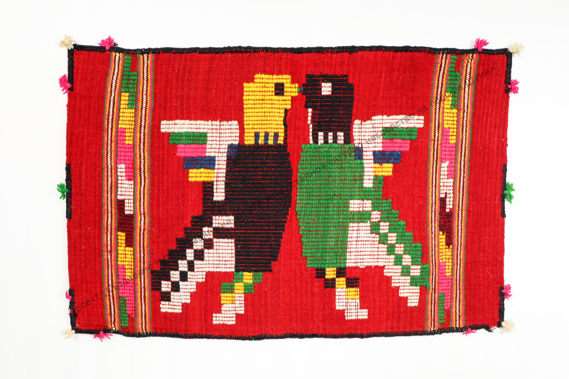 От вълна. Домашно тъкана лито на разноцветни ивици в двата края, между тях начупени фигурки. В средата украса от нашити птичета, в краищата – пискюли , 30-те години на XX век