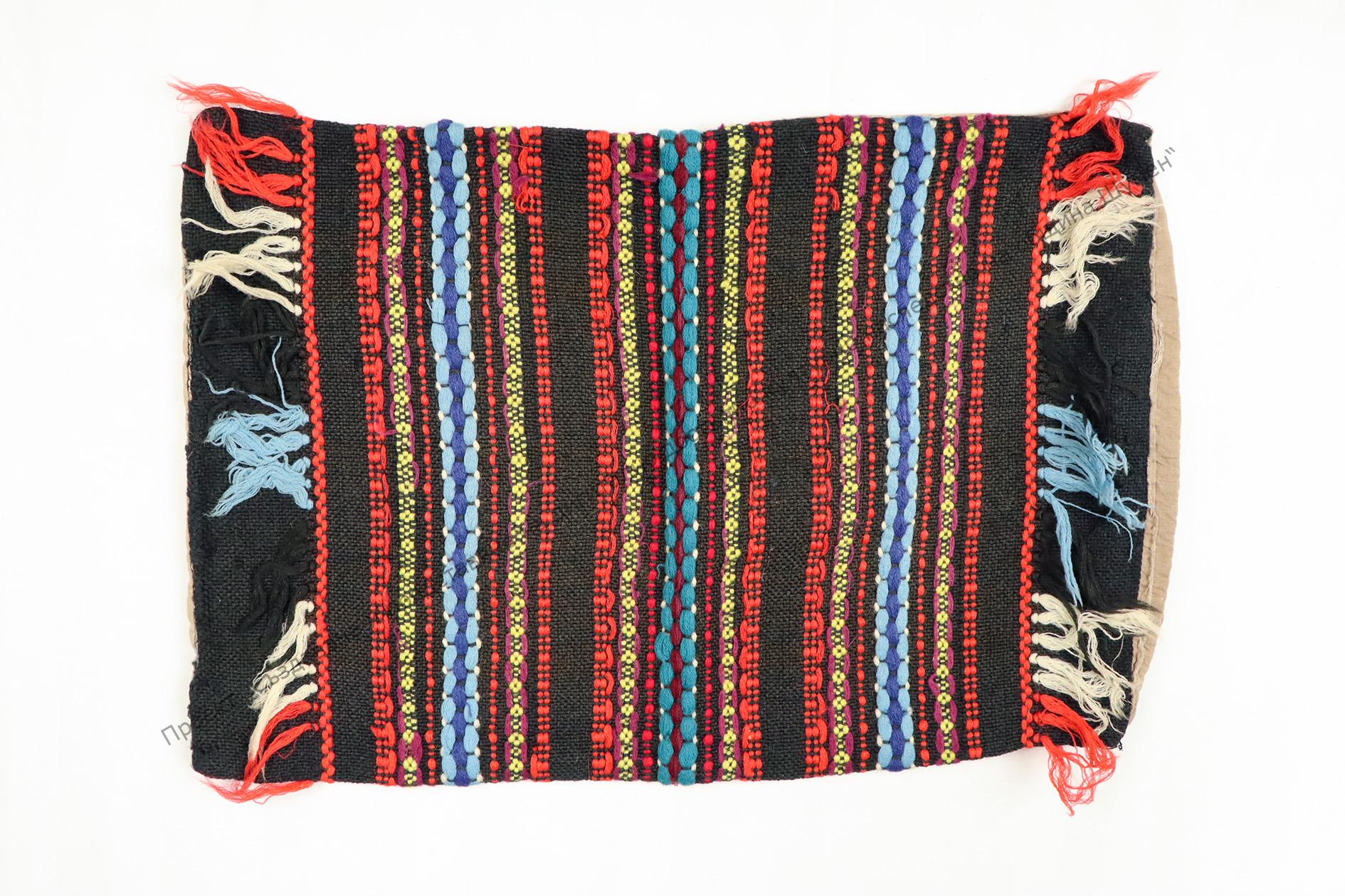 От вълна. Тъкана на разноцветни ивици, с украса от ресни в двата тесни края