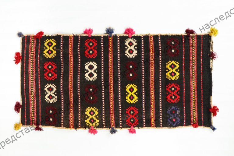 От вълна. Домашно тъкана лито на разноцветни ивици, между тях втъкани фигури, началото на XX век за чеиз