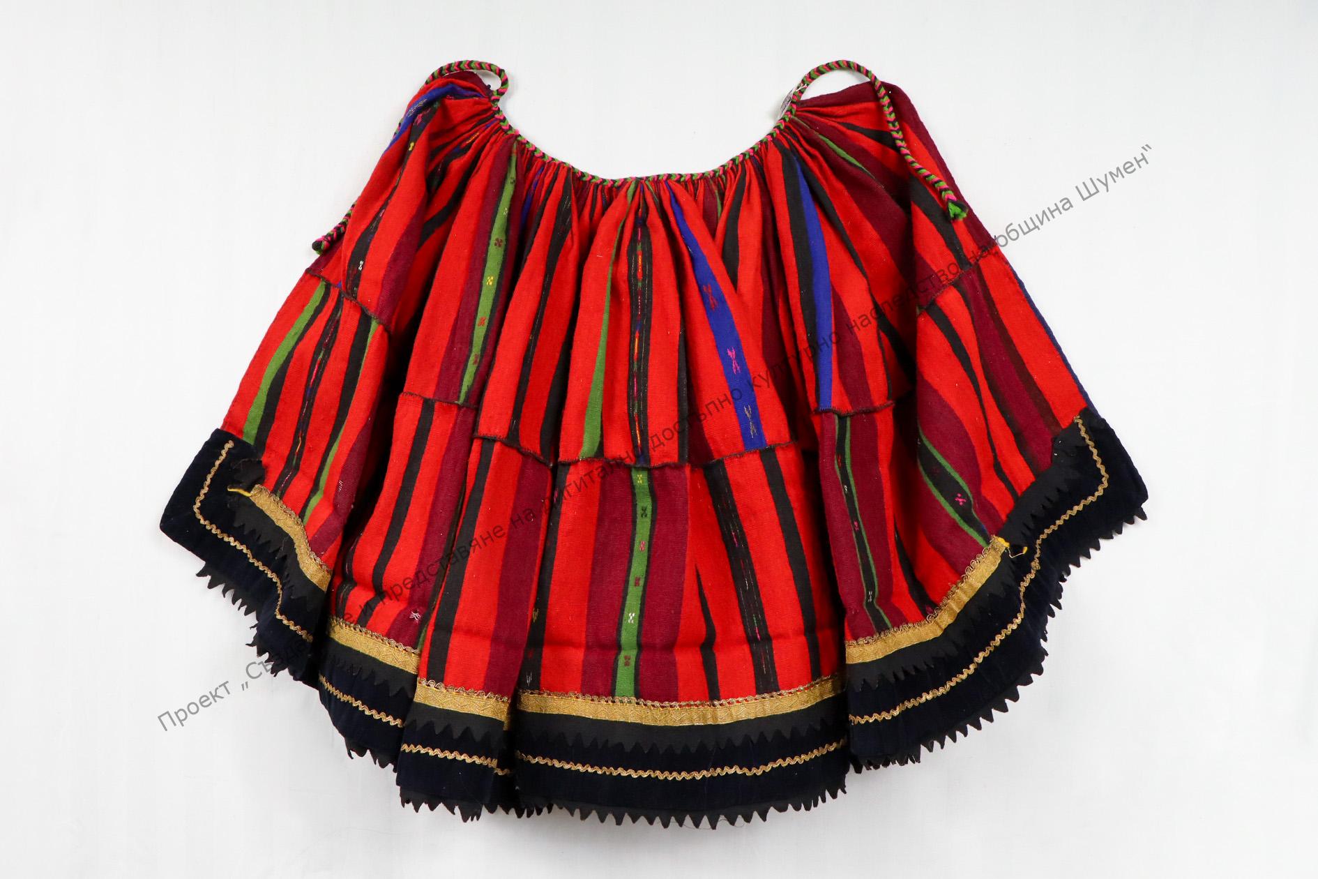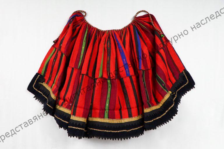 От вълна. Домашно тъкан лито на разноцветни ивици. В някои от тях нашити фигурки, първата четвърт на XX век