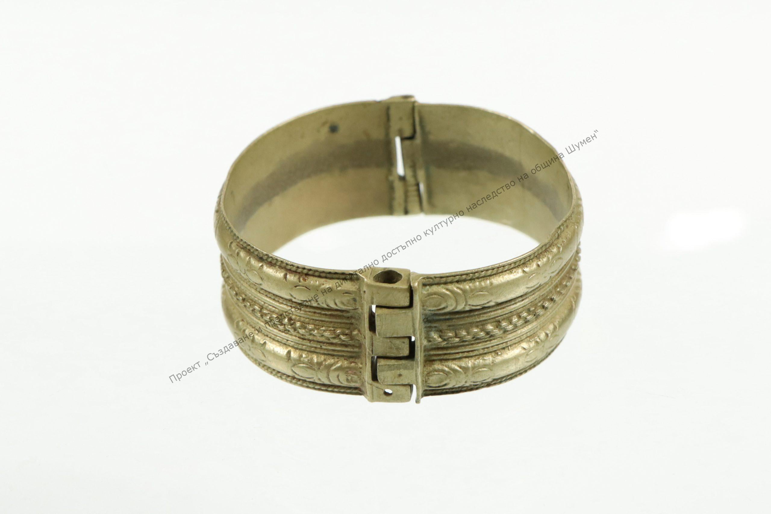 От сребро. Затворена, състои се от две части, затварящи се с шарнир. Украсена с гладки ивици с растителни орнаменти и плетеница