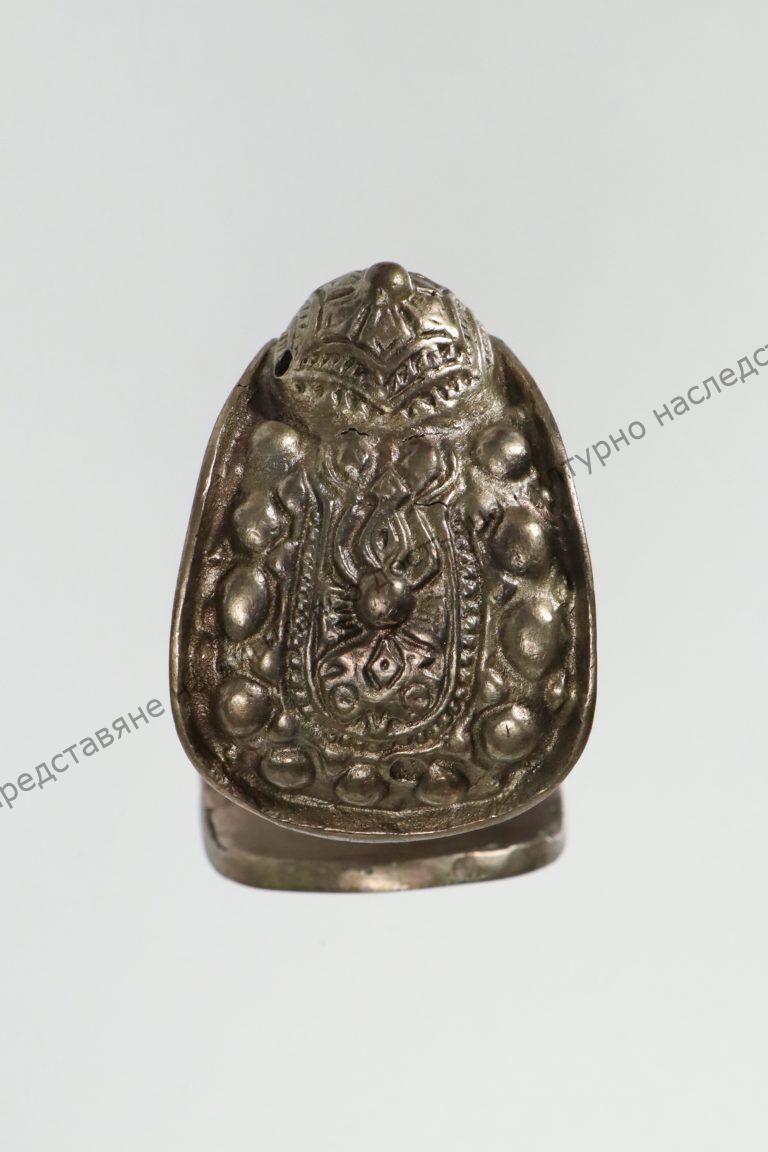 Отворена, куха, лята. Средната част набраздена, страничните с гранулирана украса и растителни мотиви