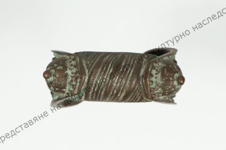 Отворена, куха, лята. Средната част набраздена, страничните с гранулирана украса и растителни мотиви