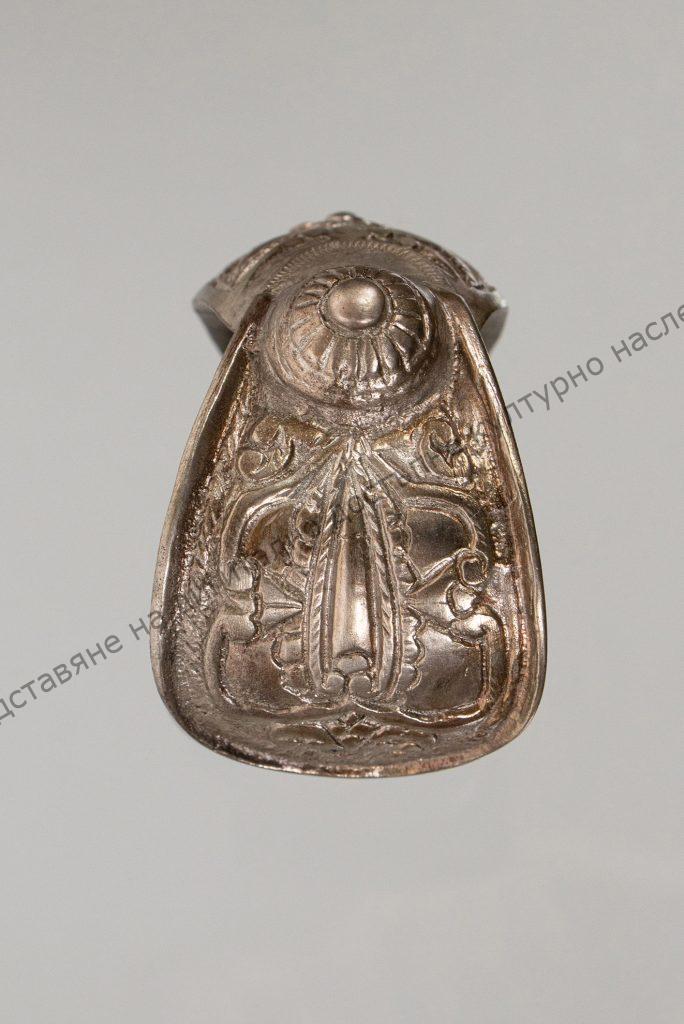Куха, лята, отворена, средната част украсена със стилизирани растителни мотиви. Короните завършват с малки пъпки, а около тях розетка от лъчеобразно разположени чертички.