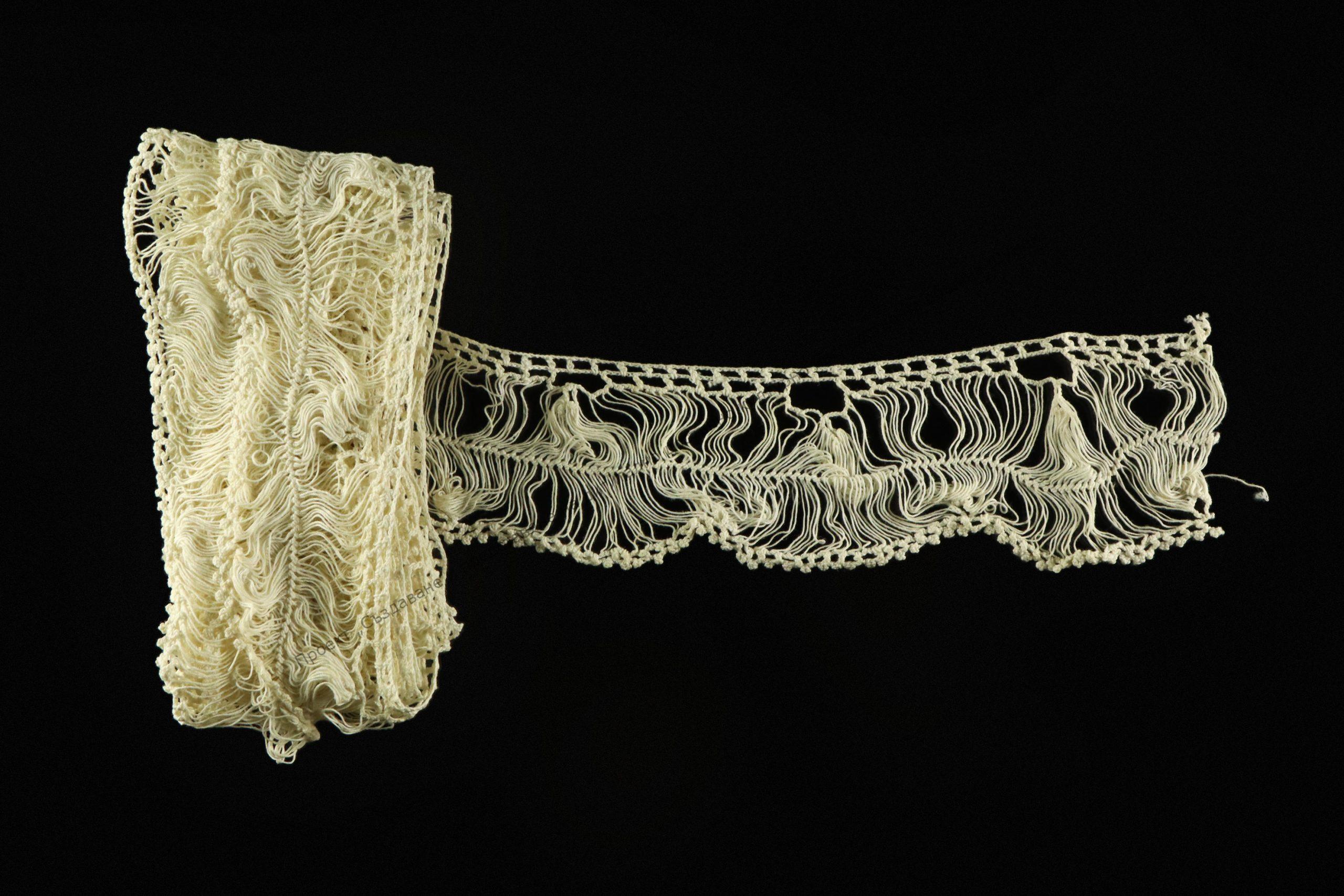 Работена от памучни фабрични конци, около 1895 г. за момински чеиз, гр. Нови пазар. От покривка за маса