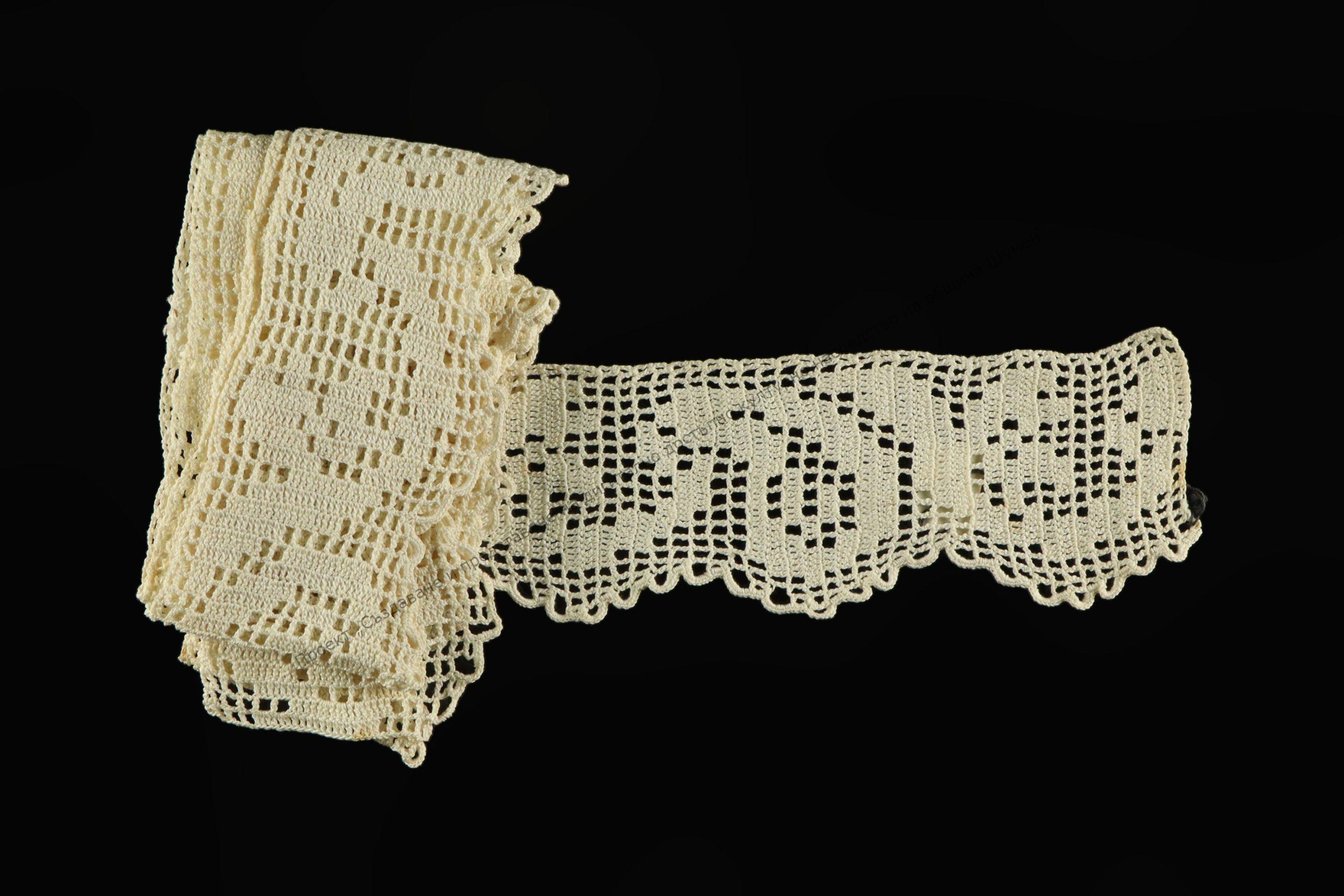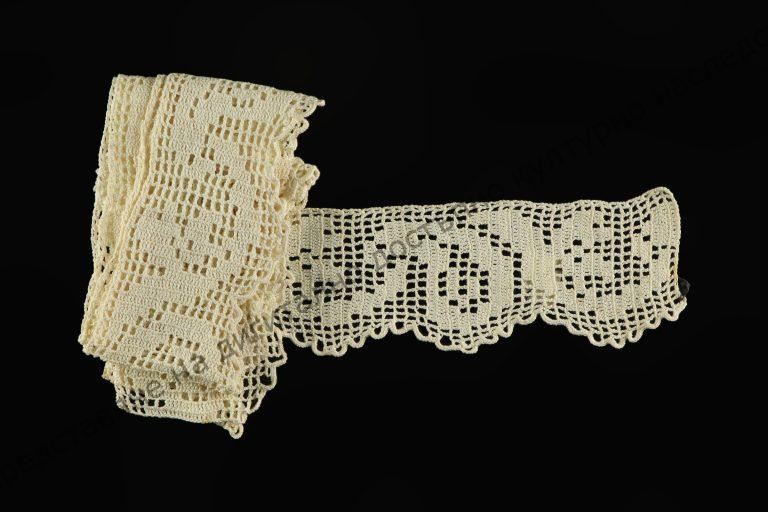 Изплетена на 1 кука от бели памучни конци, от майката на Цонка Панайотова – Велика Димитрова Пашова, около 1925-1930 г.