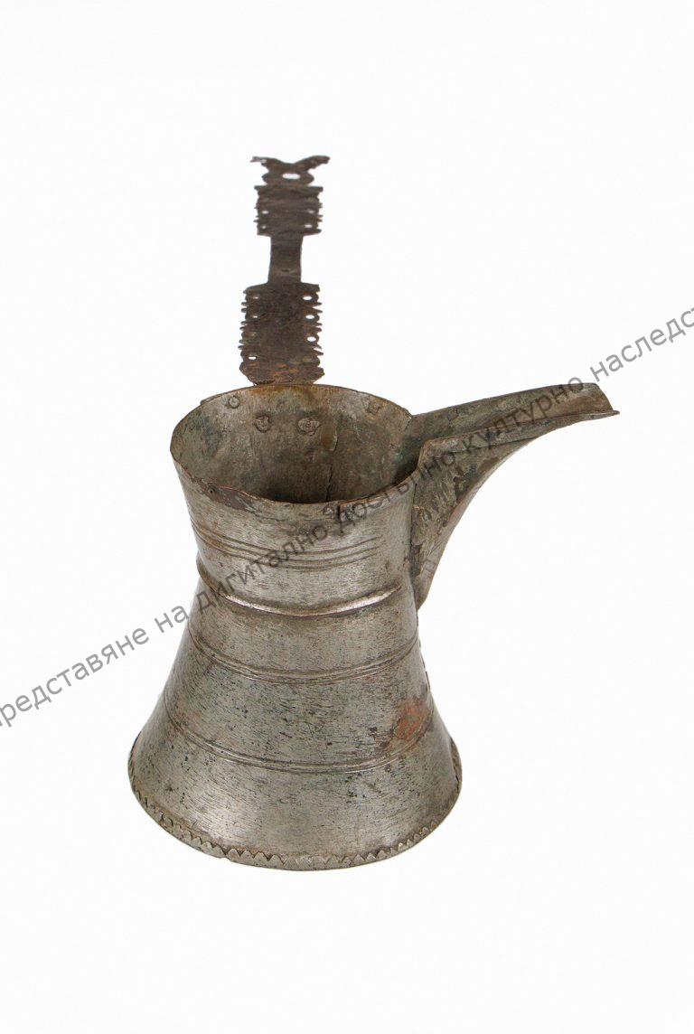 Бакърено, калайдисано, с ажурна дръжка