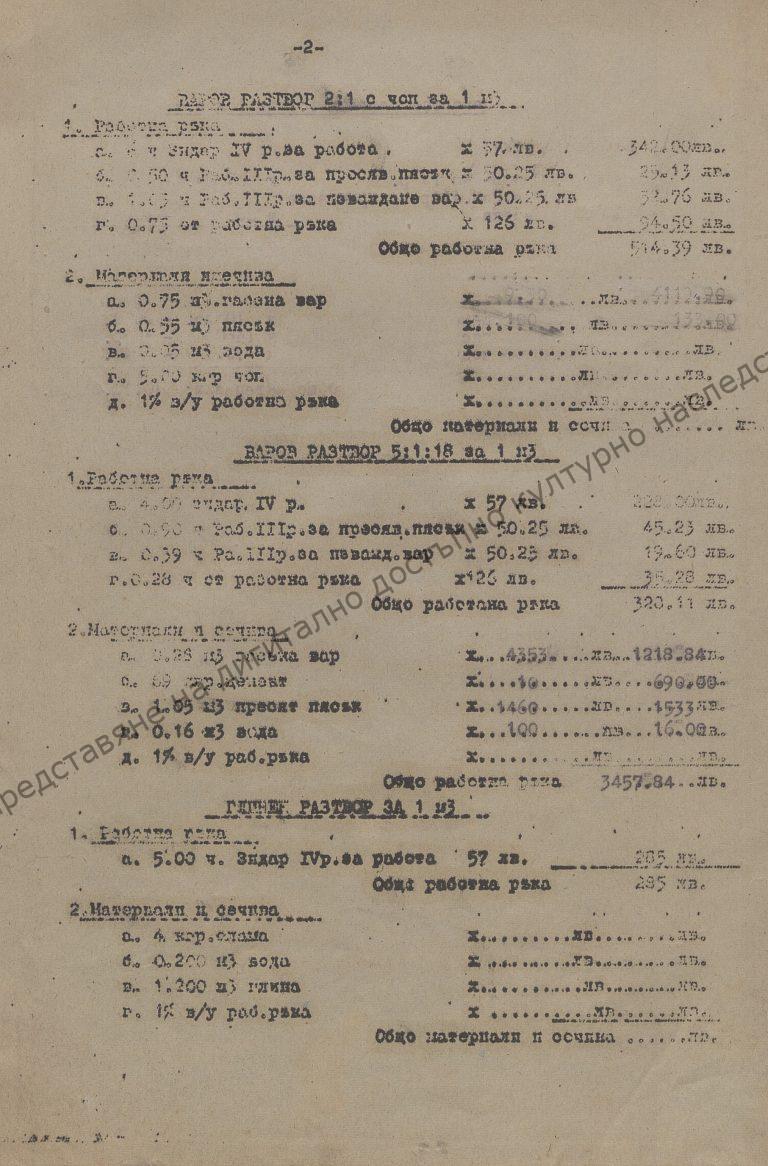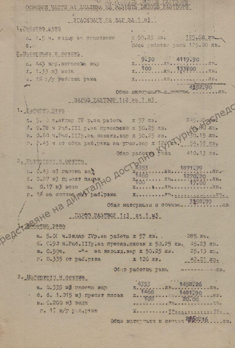 Analysis of prices and types of construction activities regarding the construction of belfry to the church in the village of Ivanovo, Preslav region, 1952